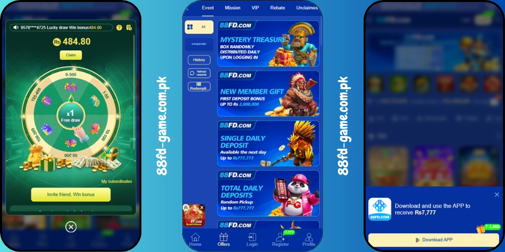 From the moment you register, 88FD starts rewarding you. New players get a welcome bonus straight away, and there is a 50% bonus on your very first deposit. So if you put in 200 PKR, you automatically get an extra 100 PKR added to your balance. After that, daily login bonuses keep rewarding you just for opening the app. There are also cashback offers, referral rewards, and special event promotions tied to occasions like Eid, Ramadan, and Independence Day. Honestly, the bonus system here is one of the most generous you will find on any Pakistani gaming app right now.